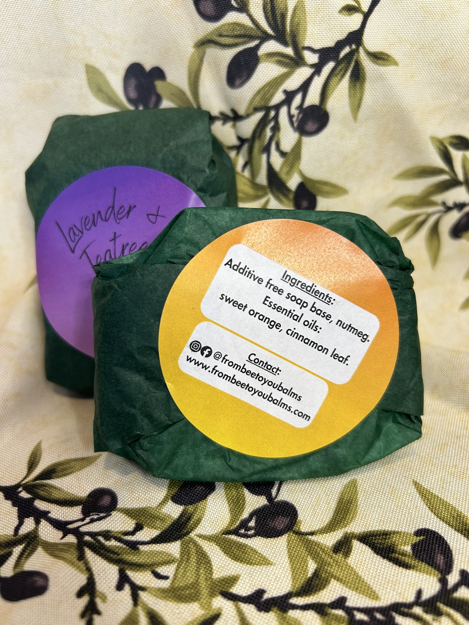 Our two choices of scent can either refresh you (Spiced Orange) or calm you while giving you a micro pamper (Lavender and Teatree).